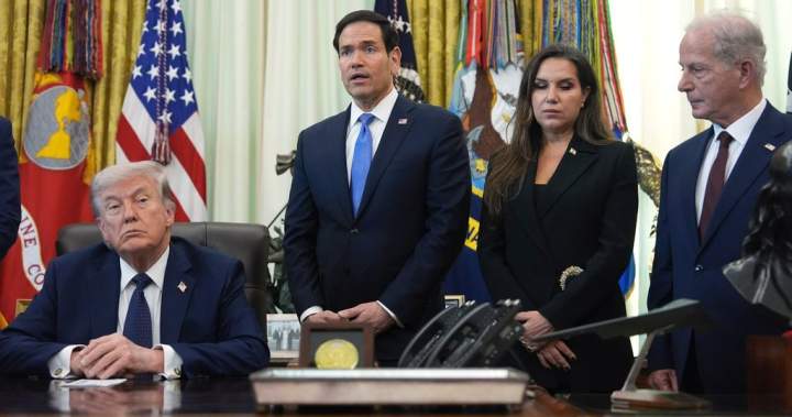 Trumpas pasveikino atvykusią Libano ambasadorę Nadą Hamadeh Moawad ir jos kolegą Izraelį Yechielą Leiterį. Be D. Trumpo, JAV atstovavo viceprezidentas JD Vance’as, valstybės sekretorius Marco Rubio, Valstybės departamento patarėjas Michaelas Needhamas, ambasadorius Izraelyje Mike’as Huckabee ir ambasadorius Libane Michelis Issa.